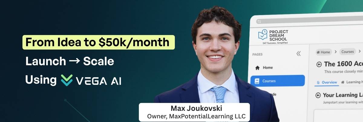 “They helped me start and launch and scale my SAT prep business… all the way up to more than $50,000 in a month. I honestly couldn’t ask for a better experience with VEGA. They have some of the best customer relationship management I’ve ever seen from a startup.”